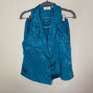 Vintage Gold Label Victoria's Secret Teal Sleeveless Button Down Top and Bottom