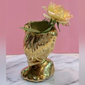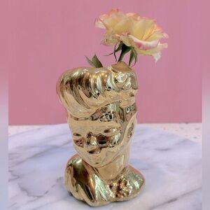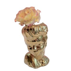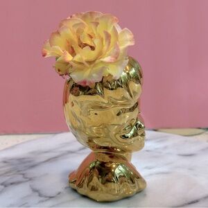 Vintage Gold Lady Flower Head Vase USA Pottery