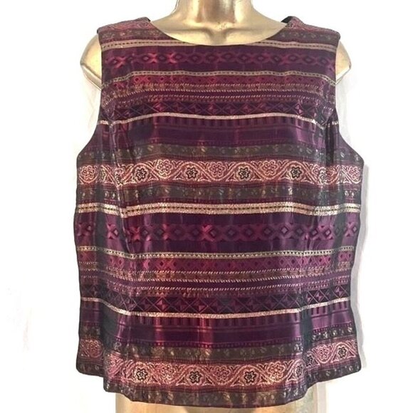 Vintage Gold Lamé Tapestry Blouse 14 Top Metallic Striped Evening Party NYE