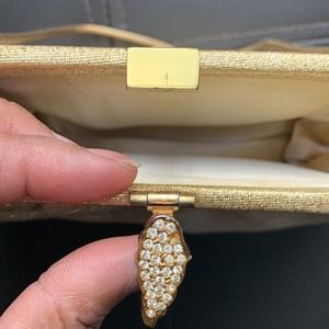 Vintage Gold Lame Evening Handbag Gold Chain Rhinestone Clasp