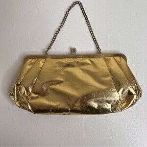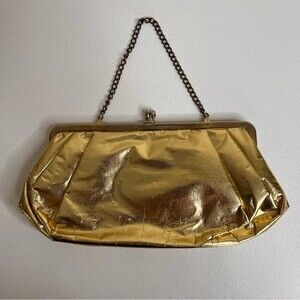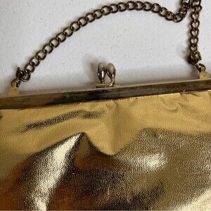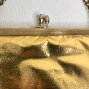 Tags: gold metallic clutch purse handbag lame vintage disco cocktail blingy costume chain handle