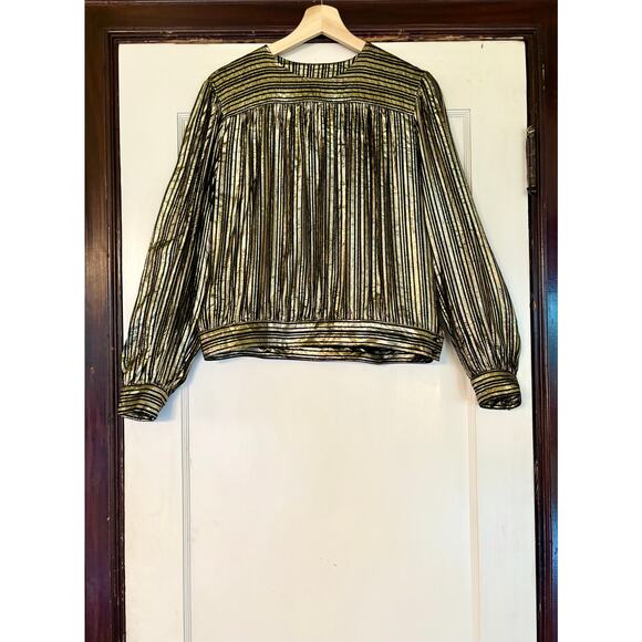 Vintage Gold Lame Stripe Blouse- Size 10, Party, NYE, Holiday