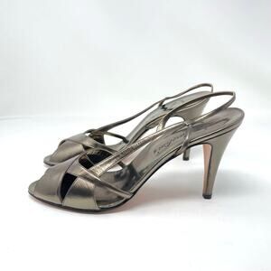 Vintage Gold Leather Sandal Heels Strappy 10 Italian