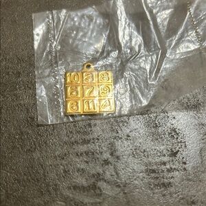 Elegant gold square lottery pendant, or magic square. All rows add up to 21. Still sealed in original bag.