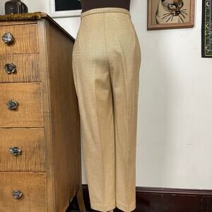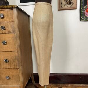 Gorgeous wool and mylar cigarette pants by Susan Laurie. These fully lined pants have a high waist, very slim fit leg, and are a shorter inseam. Classic 60s / 70s aesthetic.