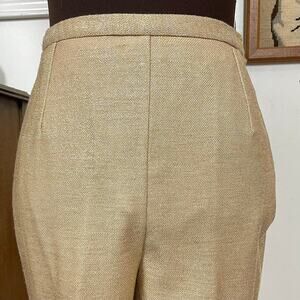Vintage Gold Lurex Cigarette Pants, 1960's High Waist Tapered Capris, Sz XS