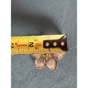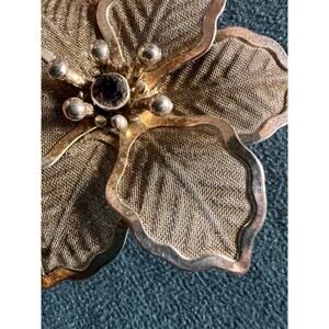 • Textured mesh petals with scalloped gold-tone edging