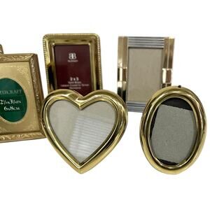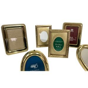 Vintage Gold Metal Brass Mini Photo Picture Frames Lot of 8 Embossed Ornate. Preowned. Good condition. One frame has some silver on it it too. Please see all photos for details and sizes. Come from smoke free home. Ship out fast!