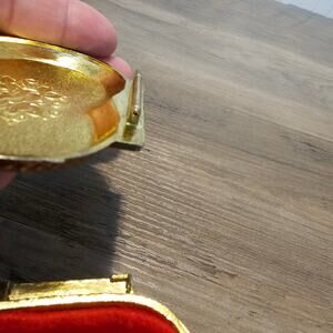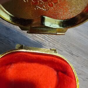 Vintage Gold Metal Heart Trinket Jewelry Box Cherub Velvet Japan Renaissance