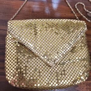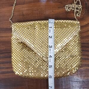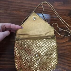 Vintage Gold Metal Mesh Shoulder Bag Chain Strap Flap Wedding Glam Holiday Party