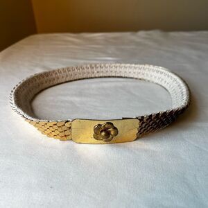 Vintage Gold Metal Stretchy Waist Belt Flower Buckle Boho Disco 70s 80s Small