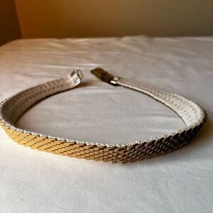 vintage gold stretch belt, 70s disco glam belt, metallic flower buckle belt, boho festival belt, retro chain link belt, 80s elastic waist belt, statement gold belt, vintage waist cinch accessory