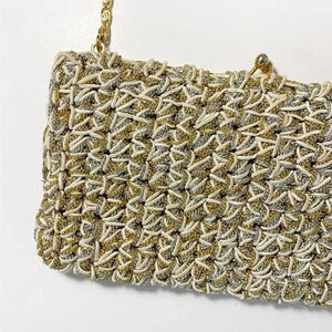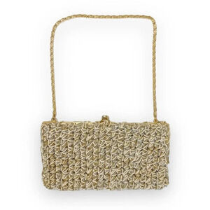 Vintage Gold Metallic Woven Evening Bag Chain Strap Creations by Solar Ltd Italy