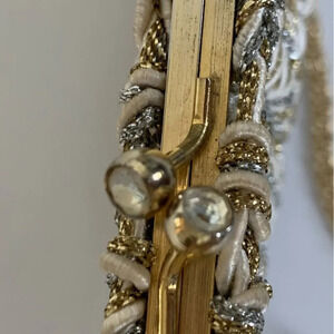 Creations by Solar Ltd Italy gold metallic woven evening bag with gold chain strap. Rhinestone kisslock clasp. Stunning vintage bag!
