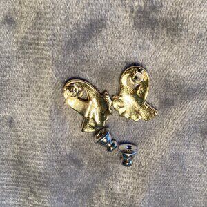 Shiny vintage gold plate earring with a tiny red glas crystal.