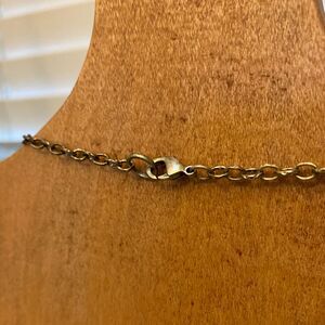 Vintage Gold Plated Chain and White Green Japanese Bead and Charm Necklace. 18.5" long. Largest bead measures 20 mm x 10 mm". Smallest bead measures 5 mm.