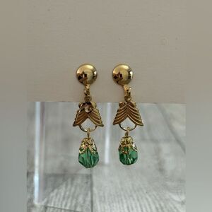 Vintage Gold Plated Faceted Green Crystal Screw Back Earrings. Very good preloved vintage condition. Measure 1.25” long.