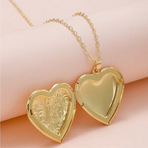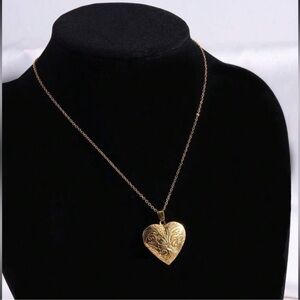 Vintage Gold Plated Heart Locket Necklace with Intricate Engravings