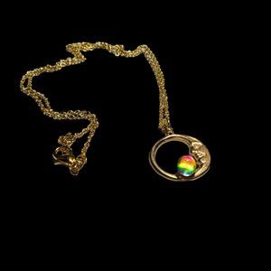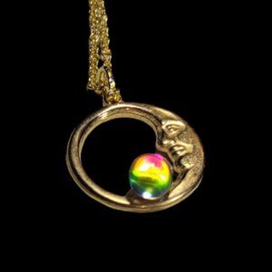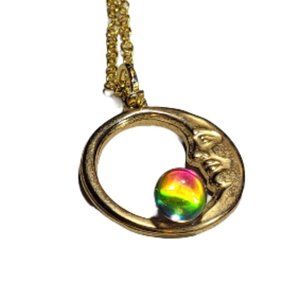 Vintage Gold Plated Man in the Moon Prismatic Glass Ball Necklace