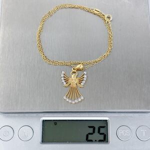 Title: Vintage Gold Plated Sterling Silver 925 Crystal Angel Pendant Necklace 18"