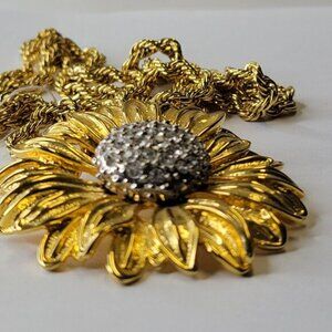 Vintage Gold Plated Sunflower Brooch And Or Pendant Necklace