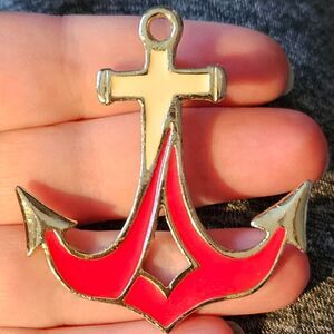 Vintage Gold Red White Anchor Enamel Pin Painted Metal Nautical Brooch Pendant