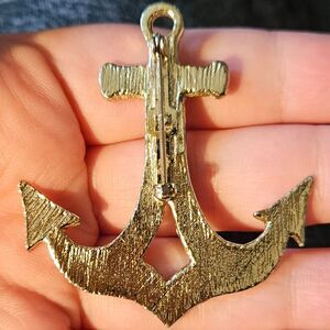 Authentic Vintage Gold Red White Anchor Painted Enamel Pin Metal Nautical Retro Brooch Pendant