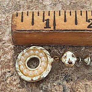 Elegant and classic vintage clip-on earrings featuring a circular gold-tone frame with faux pearl accents and screw-back closures for comfort and style.
