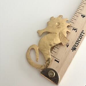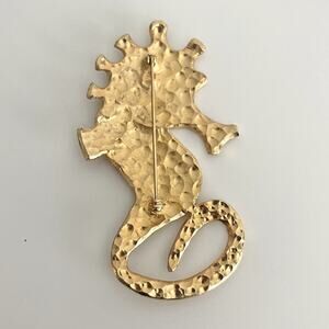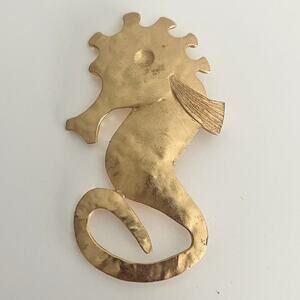 Vintage Gold Seahorse Pin Brooch Large Oversized Metal Nautical Statement Glam