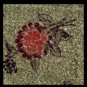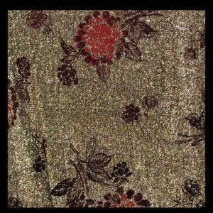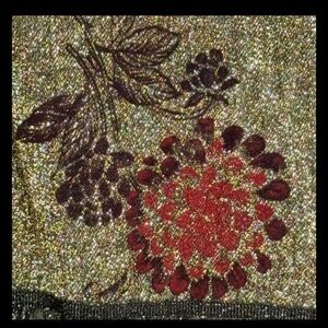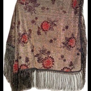 Vintage Gold Shimmery Scarf Red & Brown Floral Print Shimmery Gold Black Fringe