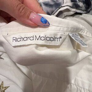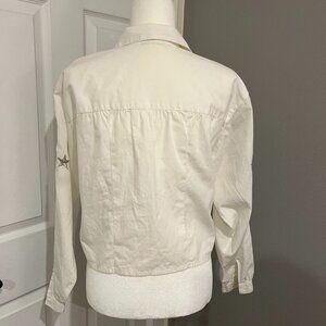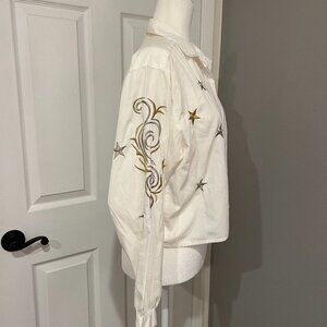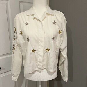 Vintage Gold Silver Embroidered Star Button Collared Blouse Size 6