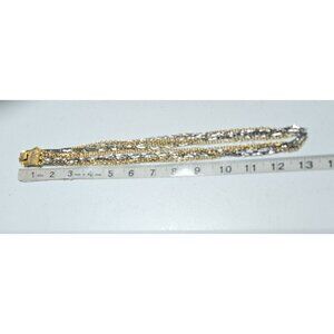 This vintage necklace features a blend of gold and silver multi-strands with a detailed ornate clasp, emphasizing timeless elegance and craftsmanship.