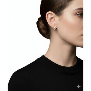 These starburst earrings combine timeless elegance with a bold design, featuring gold-tone metal, rhinestones, and a pearl centerpiece. Clip-on closure for comfort.
