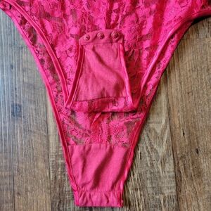 Vintage Gold Tag Victoria's Secret Red Lace Teddy Bodysuit