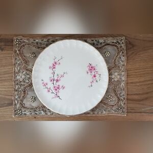 Vintage Gold Threaded Pearl Beaded Hand Sewn Table Centerpiece Tabletop Doiley