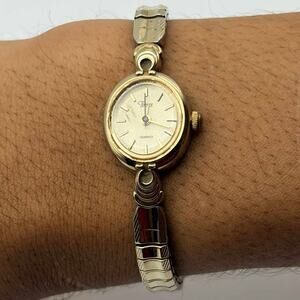 Vintage Gold Timex Watch. Fully functional with brand new batteries. Adjustable metal band fits 6 1/2 in wrist or near.