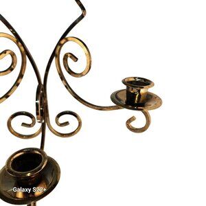 This vintage 3-arm candle holder sconce features an elegant scroll design with a gold-tone finish, ideal for adding sophistication to interiors.
