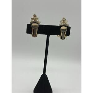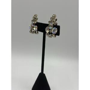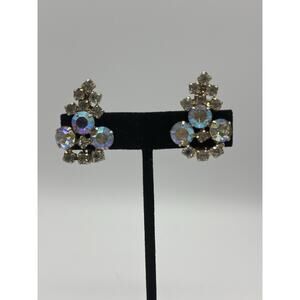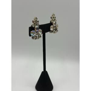 Vintage Gold Tone AB Aurora Borealis & Clear Rhinestone Clip On Earrings