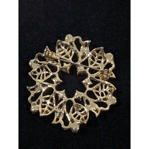 Vintage Gold Tone AB Aurora Borealis Crystal Leaf Wreath Brooch Pin