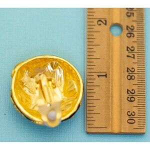 This is a large gold tone pair of clip on earrings with wavy sphere-shaped design.