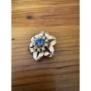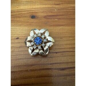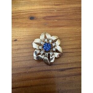 Vintage Gold Tone And Blue Clear Rhinestone Brooch Pin. Condition is Pre-owned.