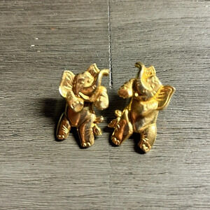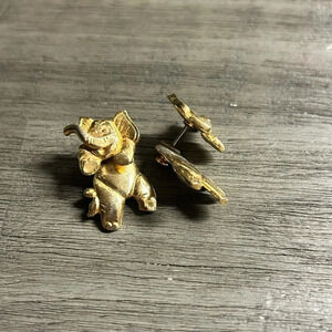 Fun adorable elephant 🐘 earrings … the head is the front of the earring the body is the back. So it looks like the elephant is hanging on your lobes!! Perfect for any vintage collection or elephant lover.