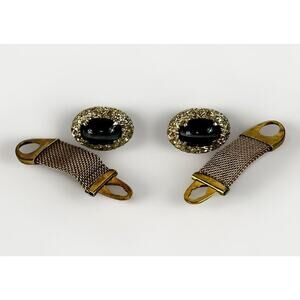 Vintage Gold Tone Black Onyx Wrap Around Mesh Cufflinks- Anson Cuff Links-
