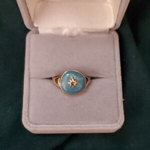Vintage Gold Tone & Blue Emamel Turquoise Celstial Star Ring Size 7 Mid Mod
