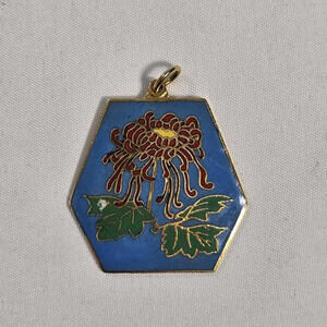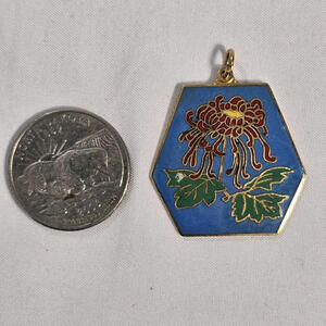 Vintage Gold Tone Blue Enamel Flower Pendant Charm