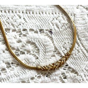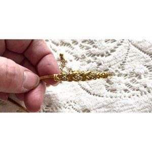 Vintage Gold Tone Braided Chain Necklace and Bracelet Set - Cubic Zirconia in good preowned condition. These are matching.