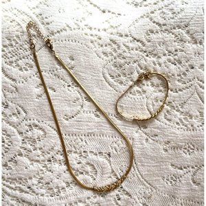 Vintage Gold Tone Braided Chain Necklace and Bracelet Set - Cubic Zirconia