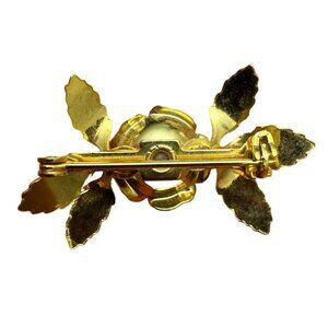 Vintage Gold Tone Brooch Floral Design with Pearl Center Elegant Jewelry