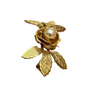 This vintage gold tone brooch features an elegant floral design with a stunning pearl center. It's the perfect accessory to elevate any outfit.