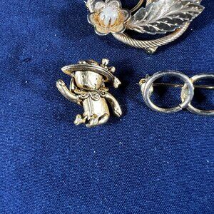 Enhance wardrobe versatility with these intricately designed gold-tone brooches. Featuring pearls, florals, and whimsical shapes, they add charm to any outfit.
